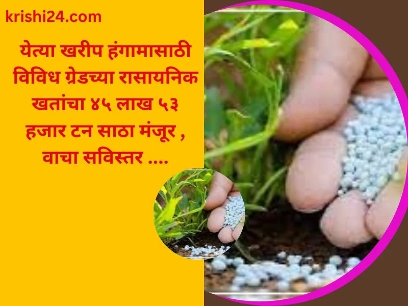 येत्या खरीप हंगामासाठी विविध ग्रेडच्या रासायनिक खतांचा ४५ लाख ५३ हजार टन साठा मंजूर , वाचा सविस्तर ….
