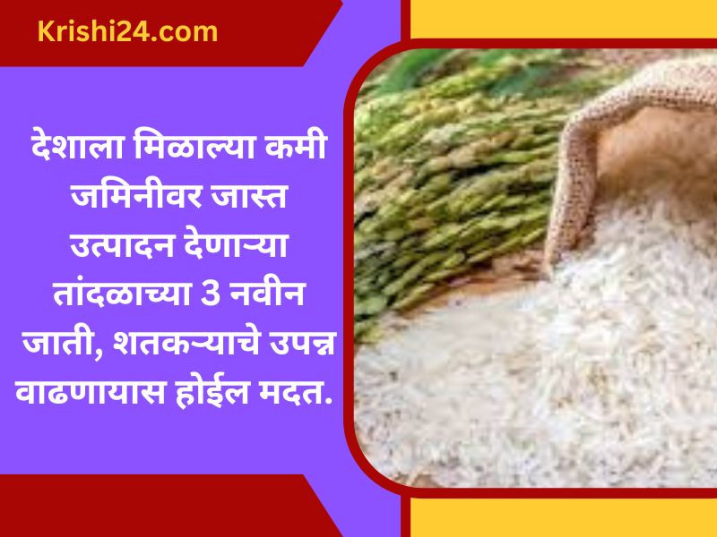 देशाला मिळाल्या कमी जमिनीवर जास्त उत्पादन देणाऱ्या तांदळाच्या 3 नवीन जाती, शेतकऱ्यांचे उपन्न वाढवण्यास होईल मदत.