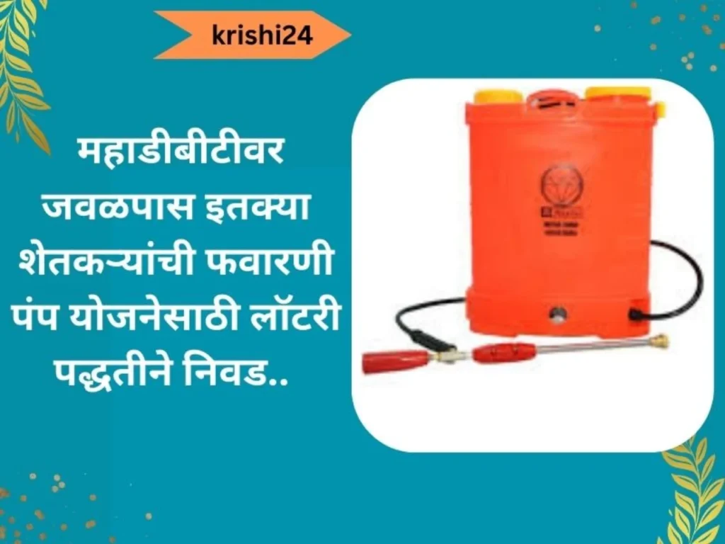 महाडीबीटीवर जवळपास इतक्या शेतकऱ्यांची फवारणी पंप योजनेसाठी लॉटरी पद्धतीने निवड..