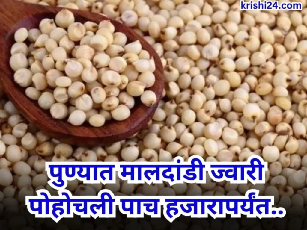 Maldandi sorghum : सध्या राज्यात अनेक बाजारात ज्वारीची आवक सुरू झाली आहे. काही ठिकाणी ज्वारीला चांगला बाजार मिळताना दिसून येत आहे. दरम्यान काल महाशिवरात्रीच्या दिवशी म्हणजेच दिनांक २६ फेब्रुवारी रोजी पुण्यात मालदांडी ज्वारीची ७१९ क्विंटल आवक झाली. कमीत कमी बाजारभाव ४३०० रुपये, जास्तीत जास्त ५६०० रुपये तर सरासरी ४९५० रुपये प्रति क्विंटल असे दर होते. […]