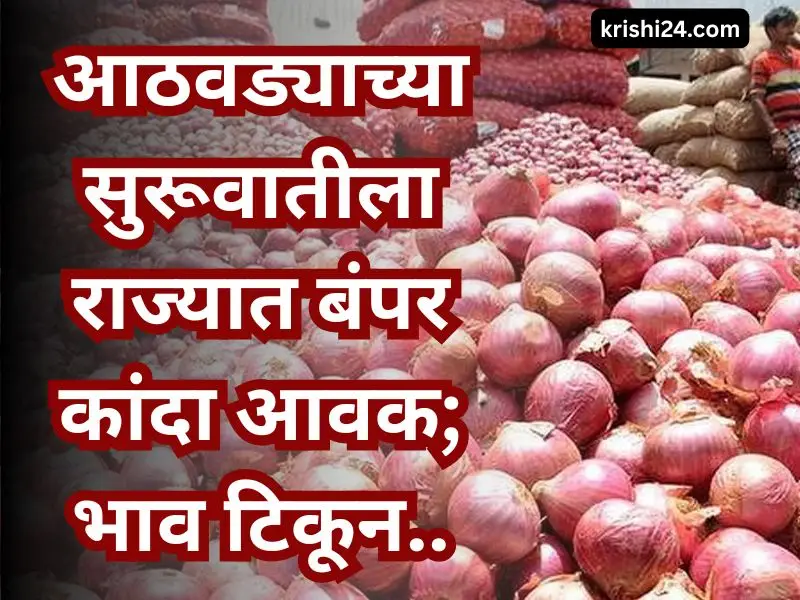 Onion market price : आठवड्याच्या सुरूवातीला राज्यात बंपर कांदा आवक; भाव टिकून…