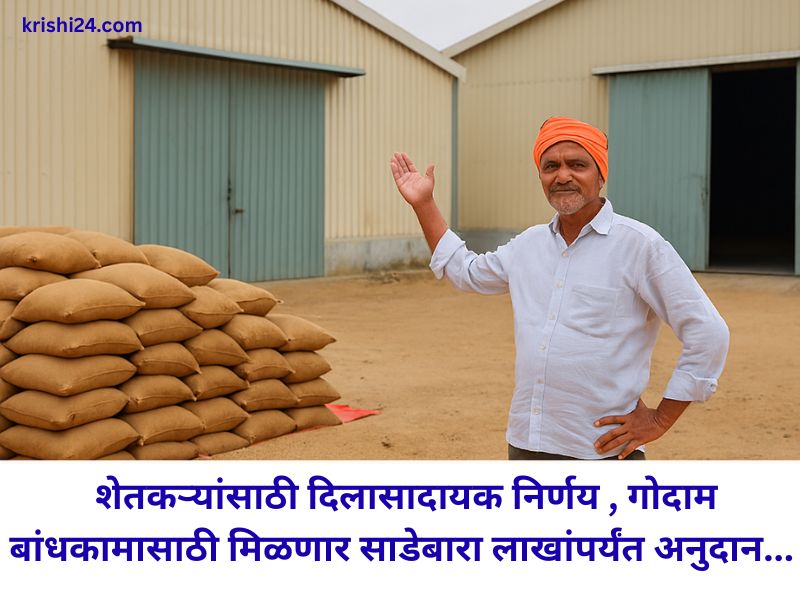 Warehouse construction subsidy : शेतकऱ्यांसाठी दिलासादायक निर्णय , गोदाम बांधकामासाठी मिळणार साडेबारा लाखांपर्यंत अनुदान…