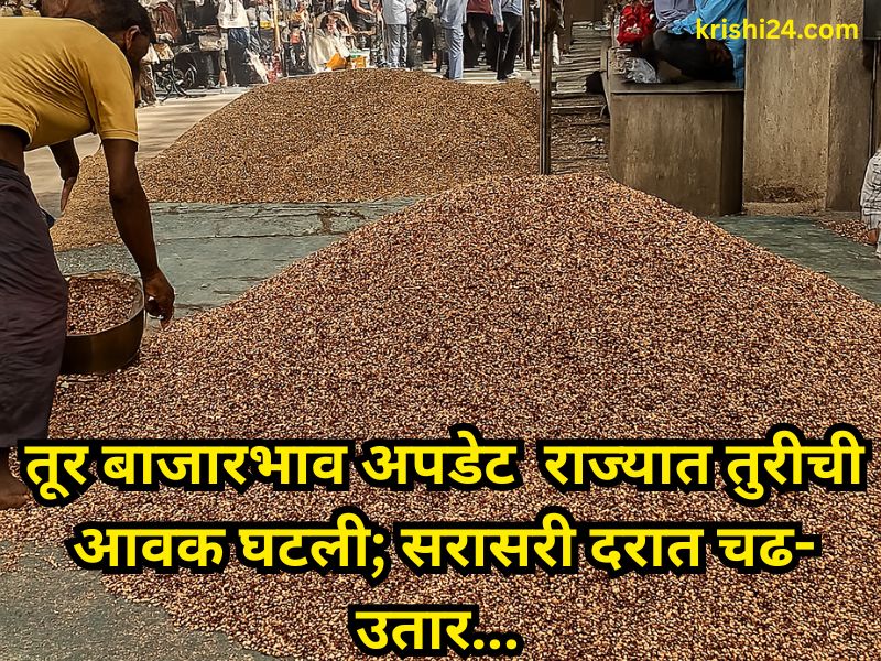 Tur bajarbhav : तूर बाजारभाव अपडेट राज्यात तुरीची आवक घटली; सरासरी दरात चढ-उतार…