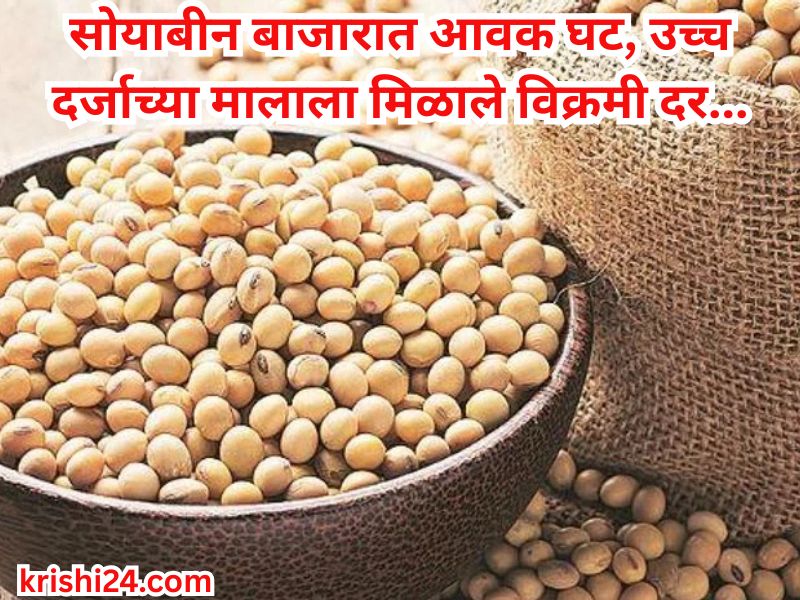 Soyabin bajarbhav : सोयाबीन बाजारात आवक घट, उच्च दर्जाच्या मालाला मिळाले विक्रमी दर…