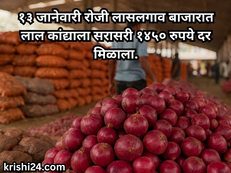 Onion rate : १३ जानेवारी रोजी लासलगाव बाजारात लाल कांद्याला सरासरी १४५० रुपये दर मिळाला…
