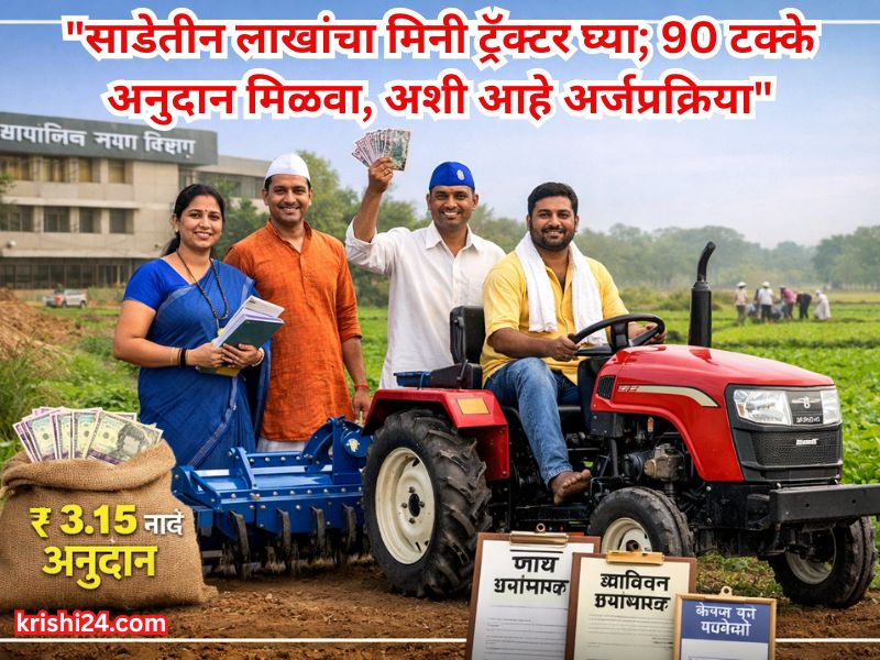 Mini tractor : “साडेतीन लाखांचा मिनी ट्रॅक्टर घ्या; 90 टक्के अनुदान मिळवा, अशी आहे अर्जप्रक्रिया”
