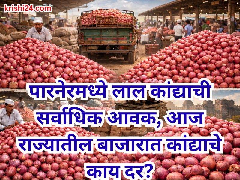 Onion rate : पारनेरमध्ये लाल कांद्याची सर्वाधिक आवक, आज राज्यातील बाजारात कांद्याचे काय दर?