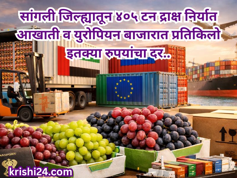Grape exports : सांगली जिल्ह्यातून ४०५ टन द्राक्ष निर्यात आखाती व युरोपियन बाजारात प्रतिकिलो इतक्या रुपयांचा दर..