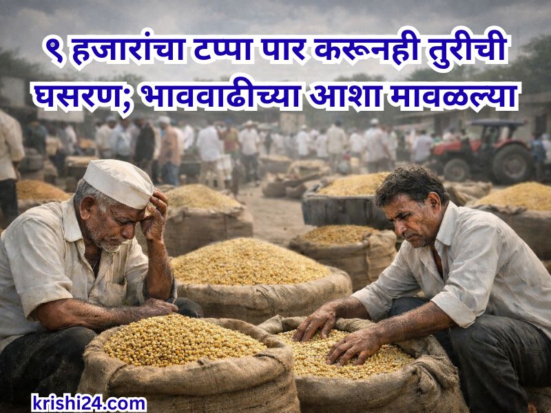 Tur rate : ९ हजारांचा टप्पा पार करूनही तुरीची घसरण; भाववाढीच्या आशा मावळल्या…