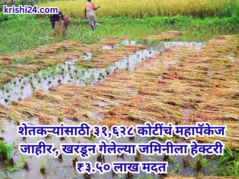 Cabinet meetings : शेतकऱ्यांसाठी ३१,६२८ कोटींचं महापॅकेज जाहीर , खरडून गेलेल्या जमिनीला हेक्टरी ₹३.५० लाख मदत…