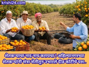 Orange farming : शेतकऱ्याचा नाद नाय करायचा! अहिल्यानगरच्या शेतकऱ्यांनी संत्रा शेतीतून उभारले दीड कोटींचे यश… January 28, 2026