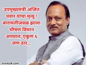 Ajit Pawar Plane Crash: उपमुख्यमंत्री अजित पवार यांचा मृत्यू ! बारामतीजवळ झाला भीषण विमान अपघात; एकूण ६ जण ठार… January 28, 2026
