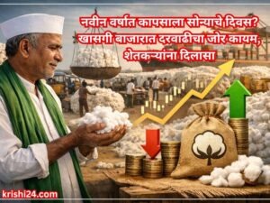 Cotton price : नवीन वर्षात कापसाला सोन्याचे दिवस ? खासगी बाजारात दरवाढीचा जोर कायम, शेतकऱ्यांना दिलासा… January 10, 2026