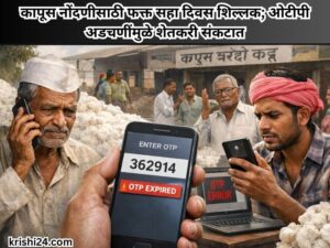 Cotton registration : कापूस नोंदणीसाठी फक्त सहा दिवस शिल्लक; ओटीपी अडचणींमुळे शेतकरी संकटात… January 12, 2026