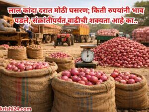 Onion rate : लाल कांदा दरात मोठी घसरण, किती रुपयांनी भाव पडले, संक्रांतीपर्यंत वाढीची शक्यता आहे का.. January 12, 2026