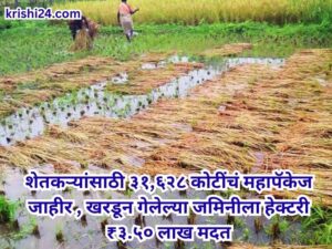 Cabinet meetings : शेतकऱ्यांसाठी ३१,६२८ कोटींचं महापॅकेज जाहीर , खरडून गेलेल्या जमिनीला हेक्टरी ₹३.५० लाख मदत… October 8, 2025