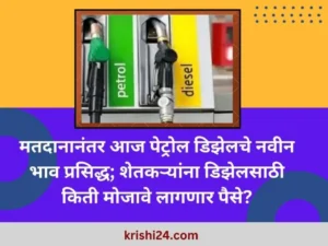 मतदानानंतर आज पेट्रोल डिझेलचे नवीन भाव प्रसिद्ध; शेतकऱ्यांना डिझेलसाठी किती मोजावे लागणार पैसे? November 21, 2024