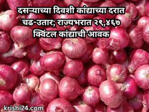 Onion rate : दसऱ्याच्या दिवशी कांद्याच्या दरात चढ-उतार, राज्यभरात २९,४६७ क्विंटल कांद्याची आवक… October 3, 2025