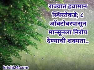 Weather update : राज्यात हवामान स्थिरतेकडे; ८ ऑक्टोबरपासून मान्सूनला निरोप देण्याची शक्यता.. October 3, 2025