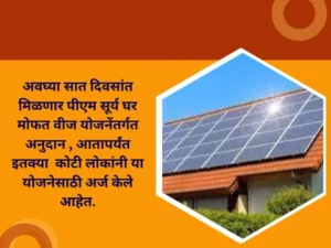 अवघ्या सात दिवसांत मिळणार पीएम सूर्य घर मोफत वीज योजनेंतर्गत अनुदान , आतापर्यंत इतक्या कोटी लोकांनी या योजनेसाठी अर्ज केले आहेत. September 18, 2024