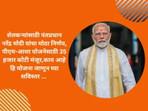 शेतकऱ्यांसाठी पंतप्रधान नरेंद्र मोदी यांचा मोठा निर्णय, पीएम-आशा योजनेसाठी 35 हजार कोटी मंजूर,काय आहे हि योजना जाणून घ्या सविस्तर … September 19, 2024