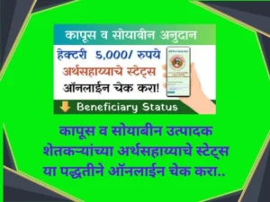 कापूस व सोयाबीन उत्पादक शेतकऱ्यांच्या अर्थसहाय्याचे स्टेट्स या पद्धतीने ऑनलाईन चेक करा.. August 24, 2024