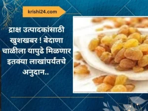 द्राक्ष उत्पादकांसाठी खुशखबर ! बेदाणा चाळीला यापुढे मिळणार इतक्या लाखांपर्यंतचे अनुदान.. August 27, 2024