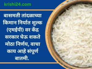 बासमती तांदळाच्या किमान निर्यात शुल्क (एमईपी) वर केंद्र सरकार घेऊ शकते मोठा निर्णय, वाचा काय आहे संपूर्ण बातमी. August 24, 2024
