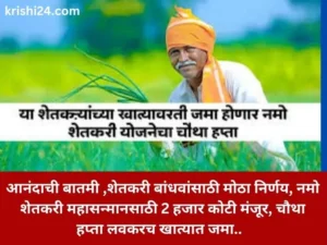 आनंदाची बातमी ,शेतकरी बांधवांसाठी मोठा निर्णय, नमो शेतकरी महासन्मानसाठी 2 हजार कोटी मंजूर, चौथा हप्ता लवकरच खात्यात जमा.. August 21, 2024