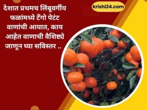 देशात प्रथमच लिंबूवर्गीय फळांमध्ये टँगो पेटंट वाणांची आयात, काय आहेत वाणाची वैशिष्ट्ये जाणून घ्या सविस्तर .. August 2, 2024