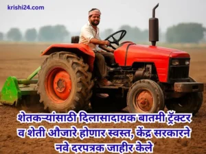 New price list : शेतकऱ्यांसाठी दिलासादायक बातमी, ट्रॅक्टर व शेती औजारे होणार स्वस्त, केंद्र सरकारने नवे दरपत्रक जाहीर केले.. September 20, 2025