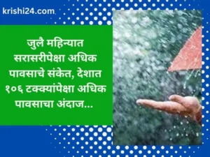 जुलै महिन्यात सरासरीपेक्षा अधिक पावसाचे संकेत, देशात १०६ टक्क्यांपेक्षा अधिक पावसाचा अंदाज… July 2, 2024