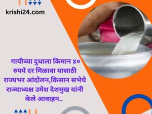 गायीच्या दुधाला किमान ४० रुपये दर मिळावा यासाठी राज्यभर आंदोलन,किसान सभेचे राज्याध्यक्ष उमेश देशमुख यांनी केले आवाहन.. June 28, 2024