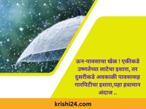 ऊन-पावसाचा खेळ ! एकीकडे उष्णतेच्या लाटेचा इशारा, तर दुसरीकडे अवकाळी पावसासह गारपिटीचा इशारा,पहा हवामान अंदाज .. May 6, 2024