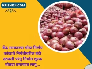 केंद्र सरकारचा मोठा निर्णय कांद्याचे निर्यतीवरील बंदी उठवली परंतु निर्यात शुल्क मोठ्या प्रमाणात लागू… May 4, 2024