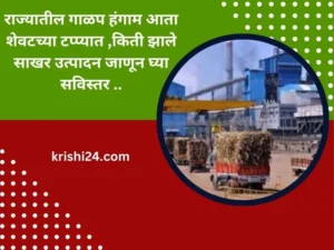 राज्यातील गाळप हंगाम आता शेवटच्या टप्प्यात ,किती झाले साखर उत्पादन जाणून घ्या सविस्तर .. April 15, 2024