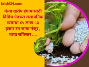 येत्या खरीप हंगामासाठी विविध ग्रेडच्या रासायनिक खतांचा ४५ लाख ५३ हजार टन साठा मंजूर , वाचा सविस्तर …. March 27, 2024