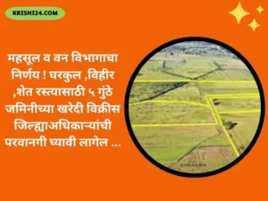 महसूल व वन विभागाचा निर्णय ! घरकुल ,विहीर ,शेत रस्त्यासाठी ५ गुंठे जमिनीच्या खरेदी विक्रीस जिल्ह्याअधिकाऱ्यांची परवानगी घ्यावी लागेल … March 20, 2024
