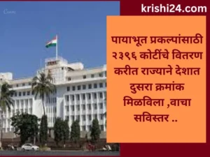 Fund for infrastructure projects : पायाभूत प्रकल्पांसाठी २३९६ कोटींचे वितरण करीत राज्याने देशात दुसरा क्रमांक मिळविला ,वाचा सविस्तर .. February 17, 2024