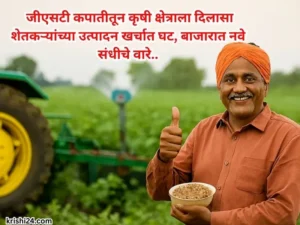 GST deduction : जीएसटी कपातीतून कृषी क्षेत्राला दिलासा शेतकऱ्यांच्या उत्पादन खर्चात घट, बाजारात नवे संधीचे वारे.. September 5, 2025