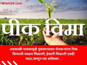Crop Insurance : अवकाळी पावसामुळे नुकसानग्रस्त शेतकऱ्यांना पिक विम्याची रक्कम मिळाली; हेक्टरी मिळाली एवढी मदत,जाणून घ्या सविस्तर .. February 9, 2024