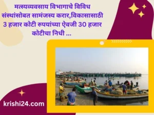 मत्स्यव्यवसाय विभागाचे विविध संस्थांसोबत सामंजस्य करार,विकासासाठी 3 हजार कोटी रुपयांच्या ऐवजी 30 हजार कोटीचा निधी … February 8, 2024