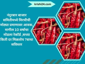 Chilli Rate : नंदुरबार बाजार समितीमध्ये मिरचीची मोठ्या प्रमाणावर आवक, मागील 10 वर्षाचा मोडला रेकॉर्ड ,सध्या किती दर मिळतोय ?वाचा सविस्तर February 10, 2024