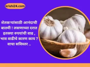 शेतकऱ्यांसाठी आनंदाची बातमी ! लसणाच्या दरात इतक्या रुपयांची वाढ , भाव वाढीचे कारण काय ? वाचा सविस्तर .. February 5, 2024