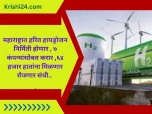 Green hydrogen production : महाराष्ट्रात हरित हायड्रोजन निर्मिती होणार , ७ कंपन्यांसोबत करार ,६४ हजार हातांना मिळणार रोजगार संधी.. January 30, 2024