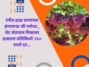 Selling grapes : रंगीत द्राक्ष वाणांच्या हंगामाचा श्री गणेशा , थेट शेतातच मिळाला द्राक्षाला प्रतिकिलो २६० रुपये दर… January 23, 2024