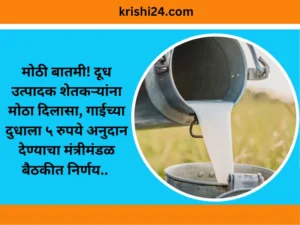 मोठी बातमी! दूध उत्पादक शेतकऱ्यांना मोठा दिलासा, गाईच्या दुधाला ५ रुपये अनुदान देण्याचा मंत्रीमंडळ बैठकीत निर्णय.. January 4, 2024