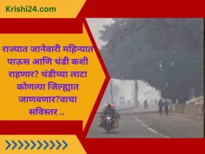 राज्यात जानेवारी महिन्यात पाऊस आणि थंडी कशी राहणार? थंडीच्या लाटा कोणत्या जिल्ह्यात जाणवणार ? वाचा सविस्तर .. January 3, 2024