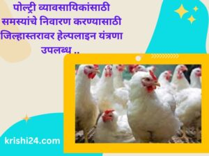 पोल्ट्री व्यावसायिकांसाठी समस्यांचे निवारण करण्यासाठी जिल्हास्तरावर हेल्पलाइन यंत्रणा उपलब्ध .. November 20, 2023