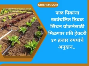 फळ पिकांना स्वयंचलित ठिबक सिंचन योजनेसाठी मिळणार प्रति हेक्टरी ४० हजार रुपयांचे अनुदान.. November 22, 2023